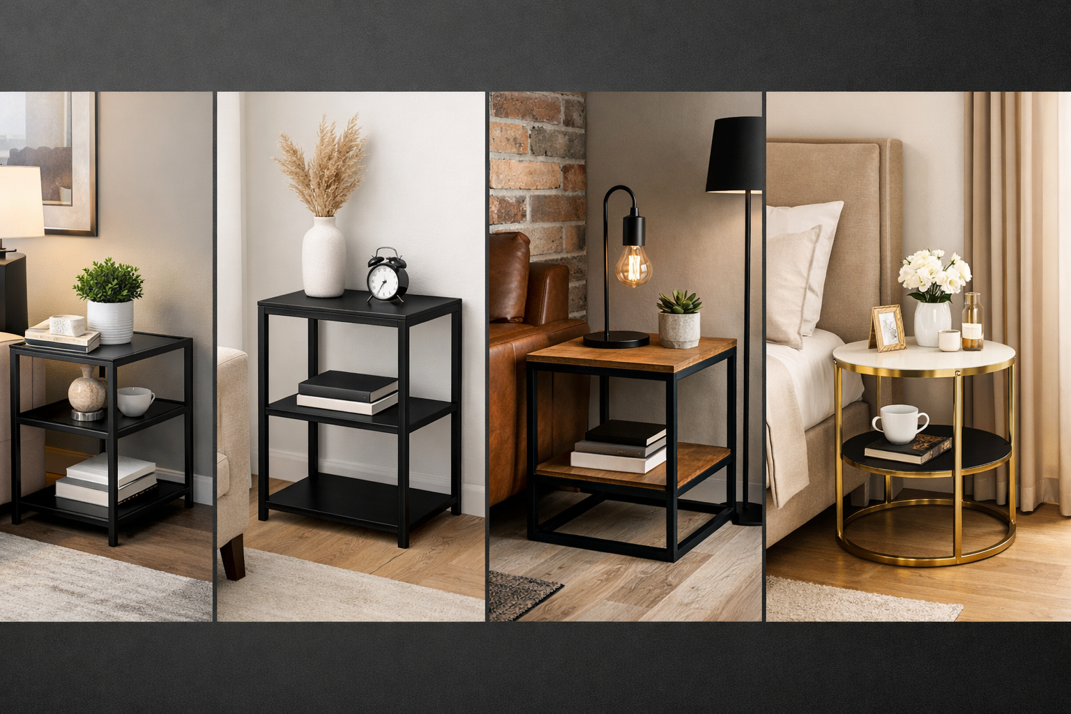 The clean lines and matte finishes of Metal Corner Tables complement modern interiors beautifully. Black powder-coated metal, gold accents, or mixed materials (metal + glass) create a luxury feel without a luxury price.