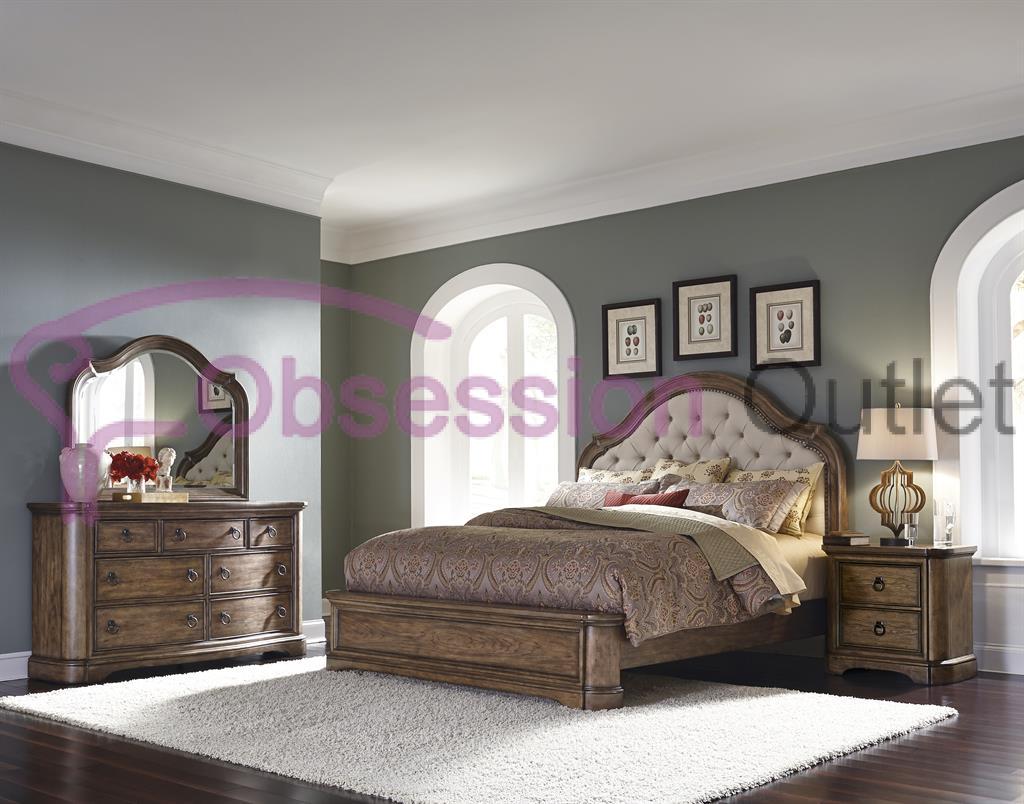 King Size Bed, 2 Side Tables & Dresser with Mirror