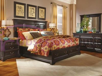 King Size Bed, 2 Side Tables & Dresser with Mirror
