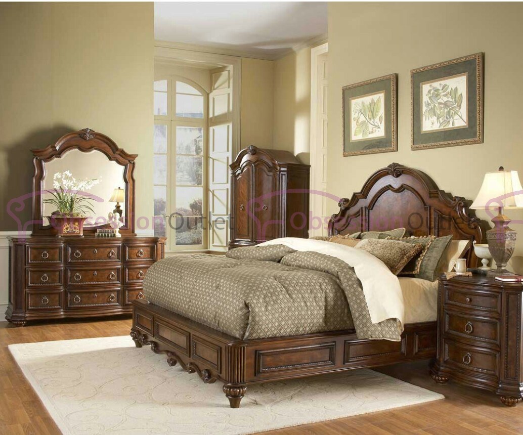 King Size Bed, 2 Side Tables & Dresser with Mirror